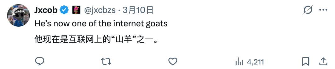 他们把阿刁称作是这段时间互联网上的 GOAT(greatest of all time,史上最强),与这个素未谋面这辈子可能也不会相见的东方男孩深深共情。