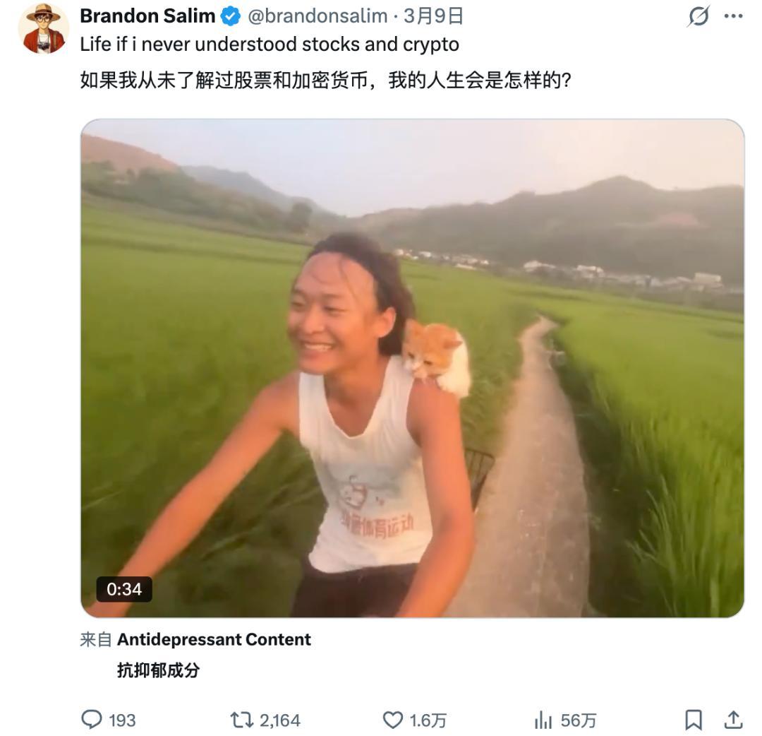 名字的起源,可以追溯到热爱炒币的印尼演员 Brandon Salim,他挪用阿刁的视频发了条帖子,大概意思是自己要是不知道股票和加密货币,应该和阿刁一样快乐。