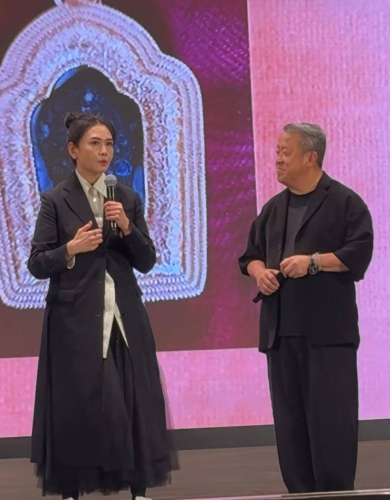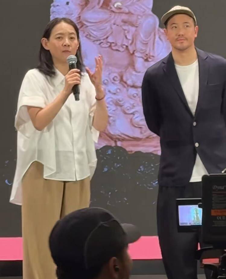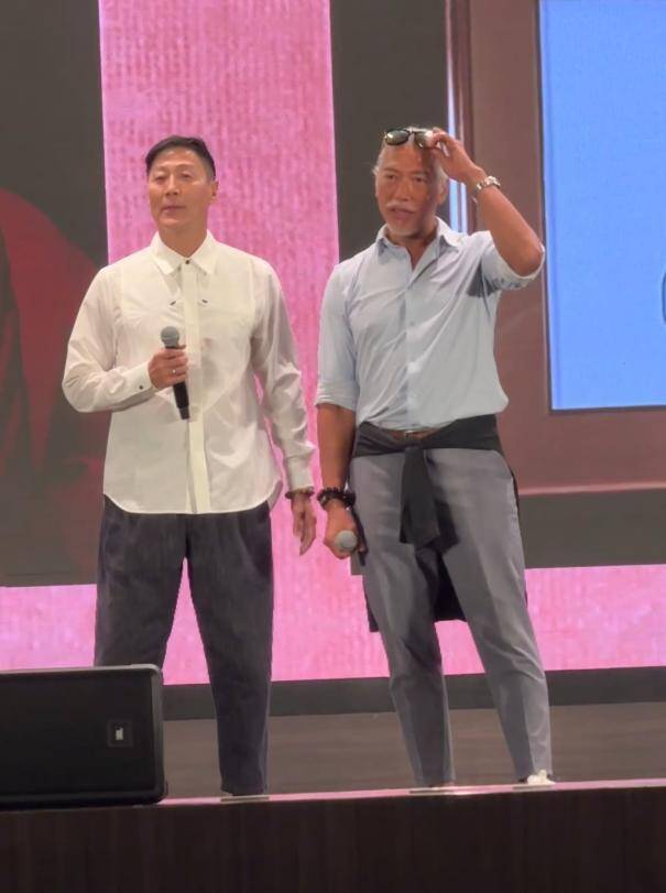 久未露面的邱淑贞,穿着黑色套装、梳着丸子头,以一副简洁干练的造型上台助拍。曾志伟在一旁满脸笑意,对她的主持功力和控场能力颇为认可。