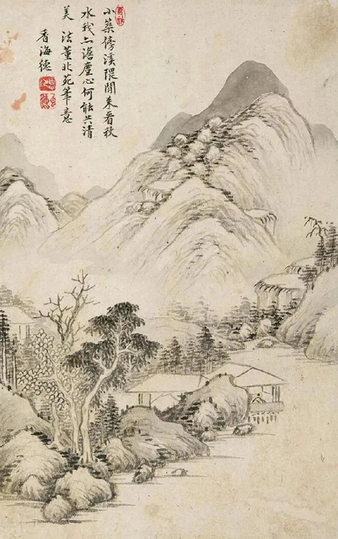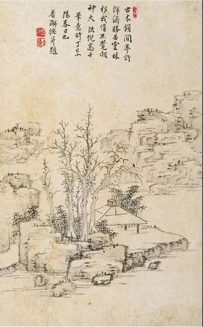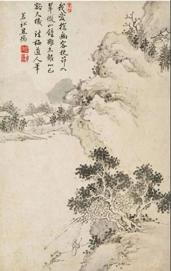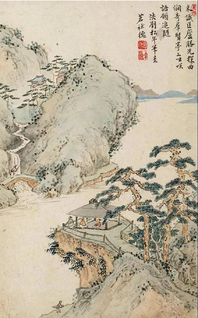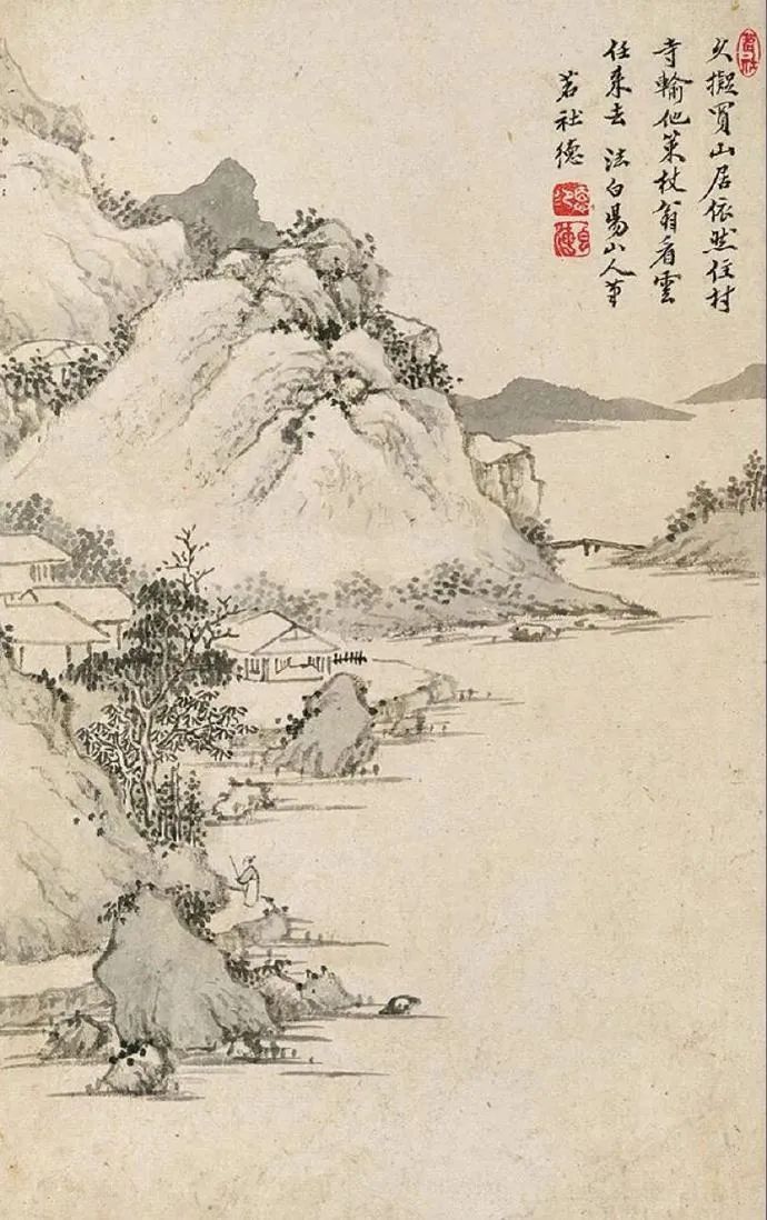 其画中常现的"空亭",堪称禅意符号的精妙注脚。这些孤零零的建筑既非避雨之所,亦非观景之台,倒像是佛陀拈花时遗落的微笑。当观者视线在空亭与远山间游移,突然领悟到:所谓"清雅无尘",原是教人放下对"雅"的执念。显德用最朴素的墨色,将山水还原为心性的镜像——那些被文人雅士赋予太多寓意的松石,在他笔下不过是随缘显现的法相。