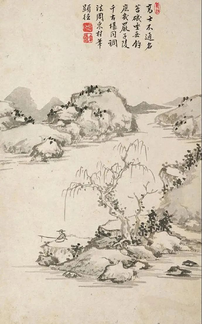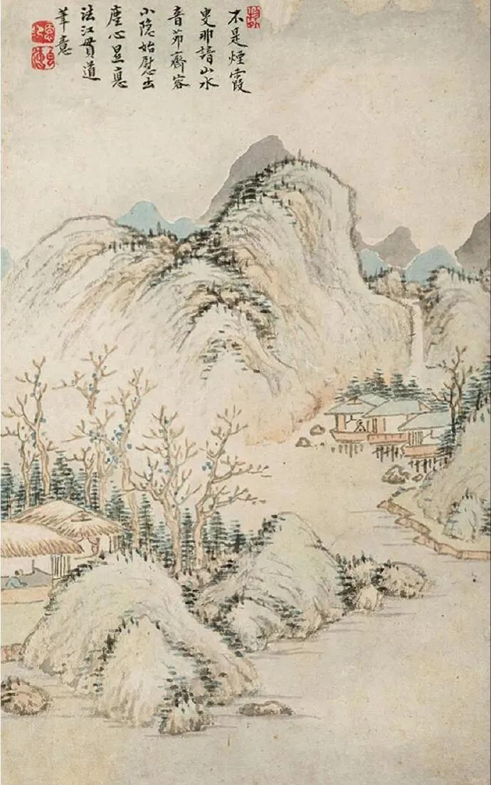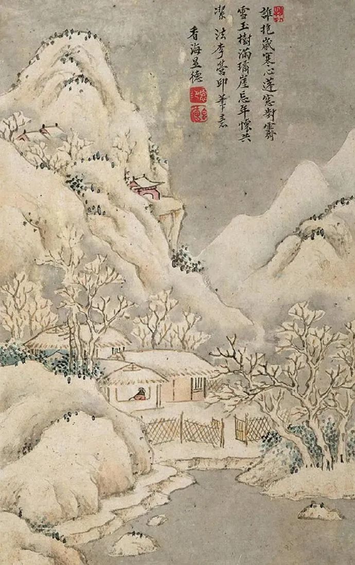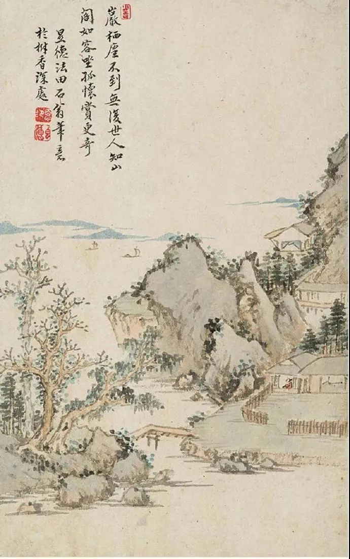 其画中常现的"空亭",堪称禅意符号的精妙注脚。这些孤零零的建筑既非避雨之所,亦非观景之台,倒像是佛陀拈花时遗落的微笑。当观者视线在空亭与远山间游移,突然领悟到:所谓"清雅无尘",原是教人放下对"雅"的执念。显德用最朴素的墨色,将山水还原为心性的镜像——那些被文人雅士赋予太多寓意的松石,在他笔下不过是随缘显现的法相。