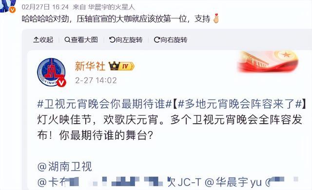 他在这场元宵晚会上还是压轴位,按照官宣顺序来看,算整个台最大的咖。