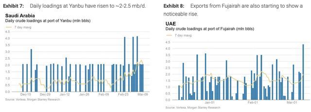 从装载数据来看,霍尔木兹海峡受阻以来,目的地为主要进口国的新增原油装货量已大幅萎缩。不过,扬布港的日装载量已回升至约200至250万桶,富查伊拉的出口量也开始出现明显回升,显示绕行管道及替代出口通道的分流作用正在逐步显现。
