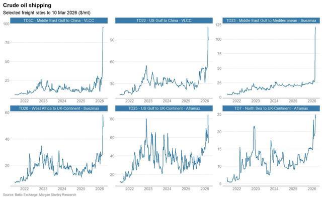摩根士丹利指出,运费的高位震荡反映出市场对海峡何时全面恢复通行仍存在较大不确定性。对于依赖波斯湾原油供应的炼油商和贸易商而言,短期内采购成本压力难以明显缓解。