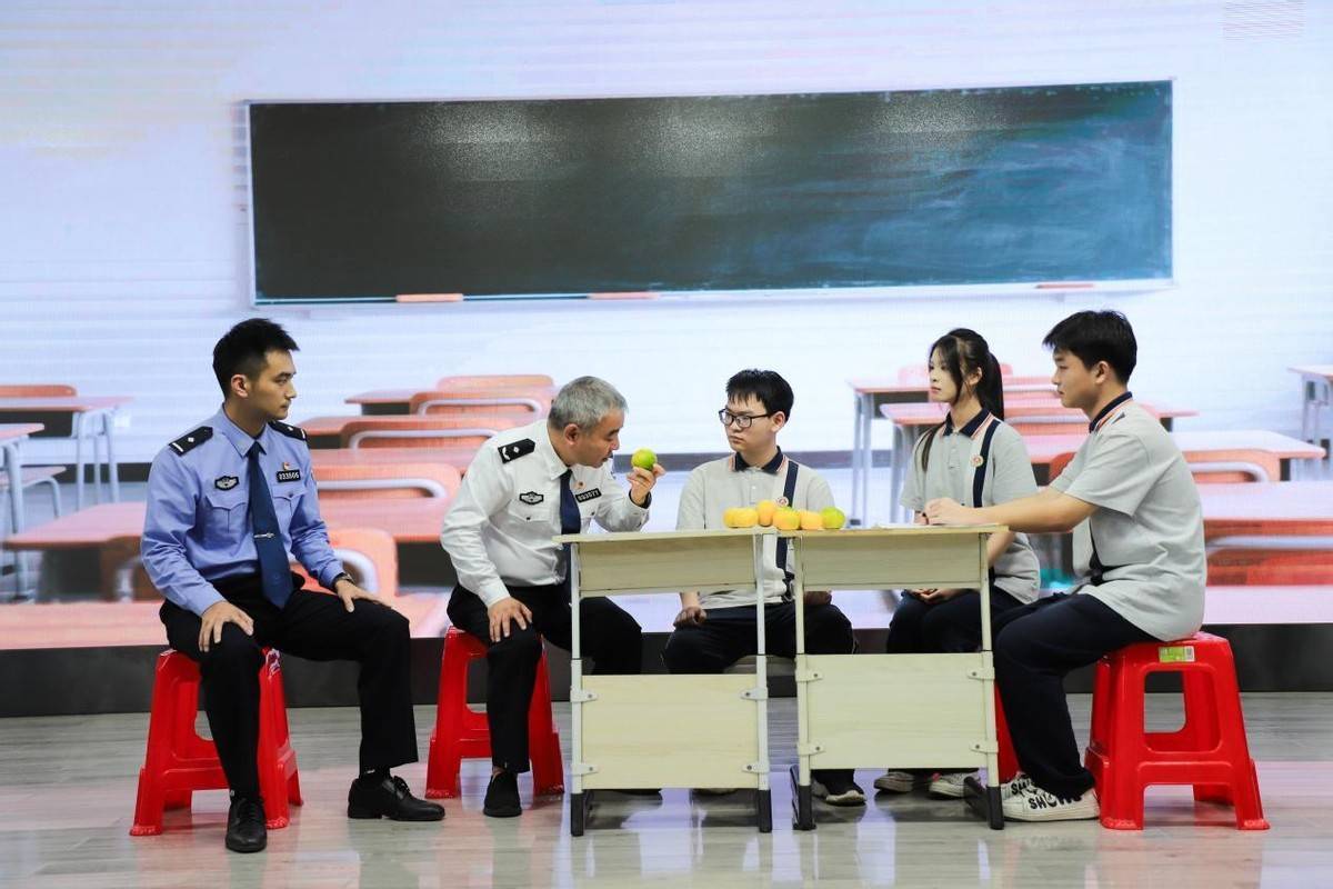 “同学们,你看这个橘子,我们砸它、摔它就会把它弄碎弄破,但是有些看不见‘伤害’对它造成的伤害却更深。”随后,警花警草和学生代表们一同演绎了一场生动形象的校园防欺凌小品《橘子课堂 青春不酸》。小品中,面对长期对同学实施欺凌行为的小张,全国公安系统二级英模、分局政务服务大队民警彭涛用橘子做比喻,将心比心地科普劝解,让小张意识到了自己的错误,精彩的表演赢得了台下的阵阵掌声。